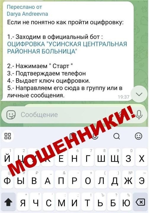 По данным пресс-службы Усинской ЦРБ, пациентам стали массово поступать сообщения в мессенджере Telegram. В них неизвестные представляются сотрудниками регистратуры или call-центра больницы.