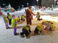 Под чутким руководством веселых героев – Мишуты и Снеговика – дети с энтузиазмом преодолевали разнообразные задания. Им пришлось проявить ловкость, уворачиваясь от воображаемых сосулек, внимательность при сборе ярких «конфет», меткость в играх на попадание в цель, а также продемонстрировать свои танцевальные таланты.