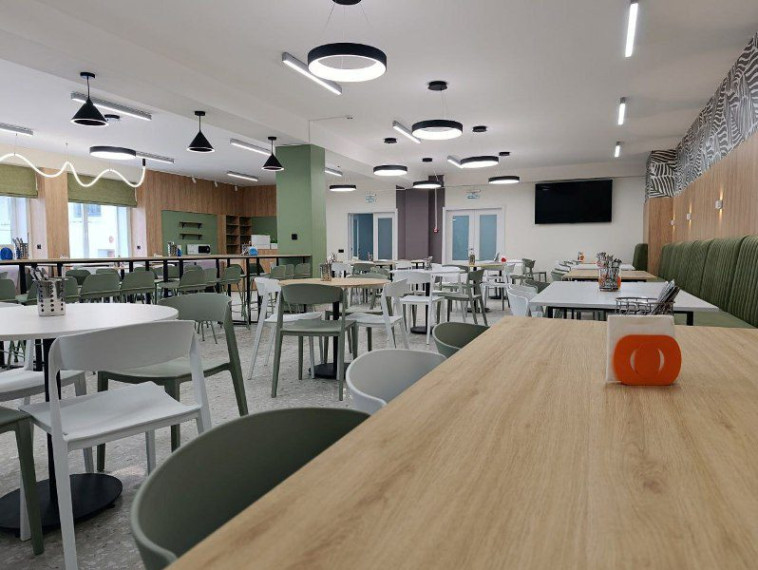 Проект школьного кафе был детально проработан для каждой школы с учетом ее особенностей. Был проведен капитальный ремонт столовых с полной заменой отделки, инженерных систем и дверей.