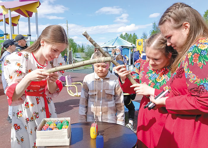 И взрослые, и дети с удовольствием включались в игры, организованные для гостей праздника на детской площадке: забивали гвоздь по очереди до шляпки, ловили «рыбу» на сухую, гоняли деревянные блины лопатой для печи, сортировали белую и красную фасоль и др. Праздник прошел в уютной семейной атмосфере веселья и радости.