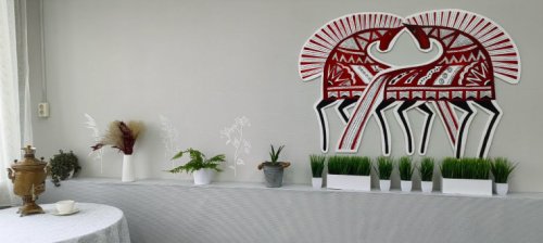 На стенах — традиционные орнаменты, в каждом узоре — многовековая мудрость народа. Деревянные столы, тёплая палитра стен, ручная роспись — это больше не просто место для приёма пищи, а пространство, где оживает история.