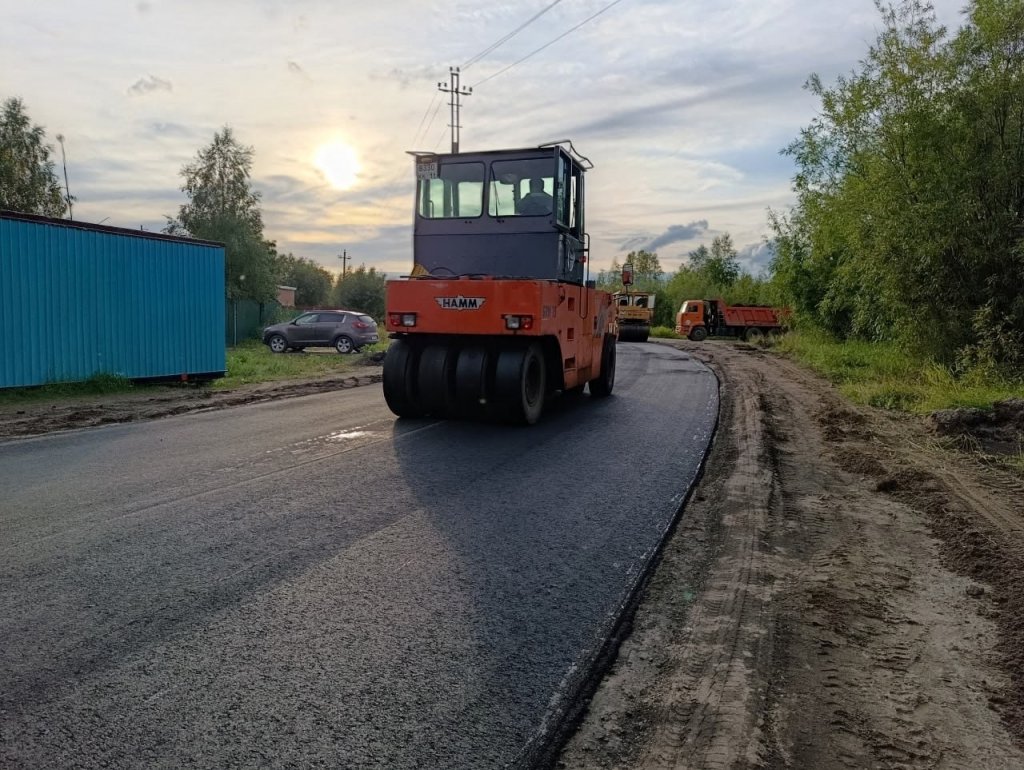 Новый асфальт укладываем на участке улице улицы Речной от магазина до поворота на дачи. Всего - более 380 метров свежего асфальта. Также подрядчик приведет в порядок обочины.
