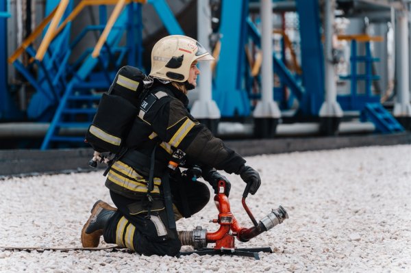 По тактическому замыслу учений в помещении компрессорной станции возник пожар. Одной из главных задач учений было оперативное решение вопросов тактики тушения пожара и проведения первоочередных аварийно-спасательных работ с привлечением большого количества сил и средств, применения различных способов подачи огнетушащих веществ.